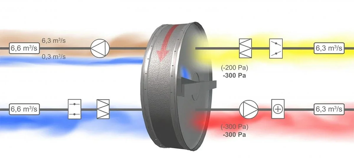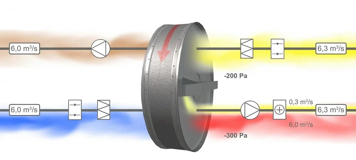 Om ett aggregat med roterande värmeväxlare är beräknat med SFP och det ställs in med rätt renblåsningsflöde och trimtryck så kan SFP öka markant, vilket innebär en högre energianvändning.